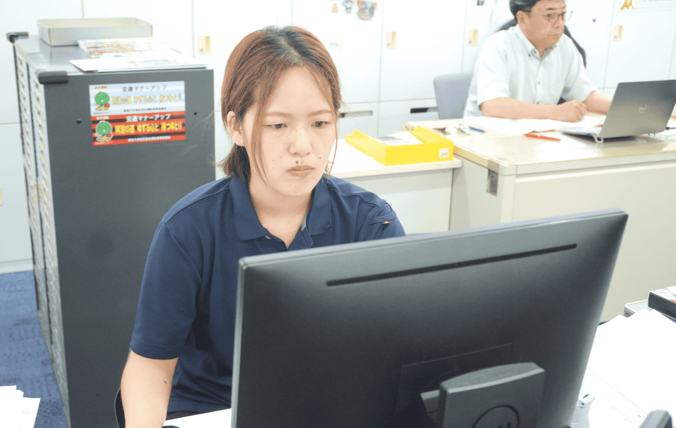 現在は業務支援部に所属し、申請書類や見積書の作成など、工事部門のサポートを担当しています。もともとは技術職でしたが、産休・育休を経て現在は時短勤務に。子どもが大きくなったら技術職に戻ることも視野に入れつつ、今はできることに集中しています。