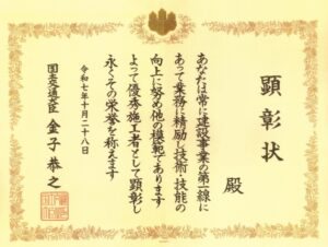 「優秀施工者国土交通大臣顕彰」とは、建設現場で卓越した技術・技能を持ち、